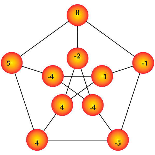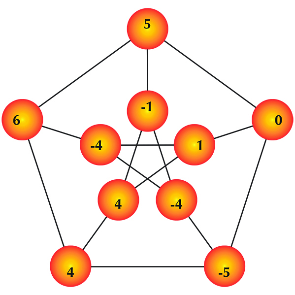 to its neighbors. A borrowing move is similar, except that the money flows in the other direction. For example, here is an illustration of a borrowing move performed on the famous Petersen graph. The picture on the left shows the starting configuration, and the picture on the right shows the new configuration after the top vertex performs a borrowing move:
