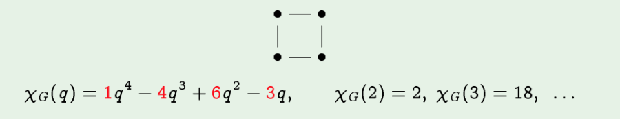 Gian-Carlo Rota noticed that there is a common generalization,in the context of matroids,of the chromatic polynomial of a graph and (a close cousin to) the sequence above. I gave an introduction to matroids in this blog post, characterizing them in terms of independent subsets and circuits. For the purposes of the present exposition, it will be convenient to present the following two alternative axiomatizations in terms of rank functions and flats.