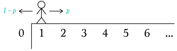 Solution: Imagine that the man starts at on the real number line and that he steps one unit to the left with probability